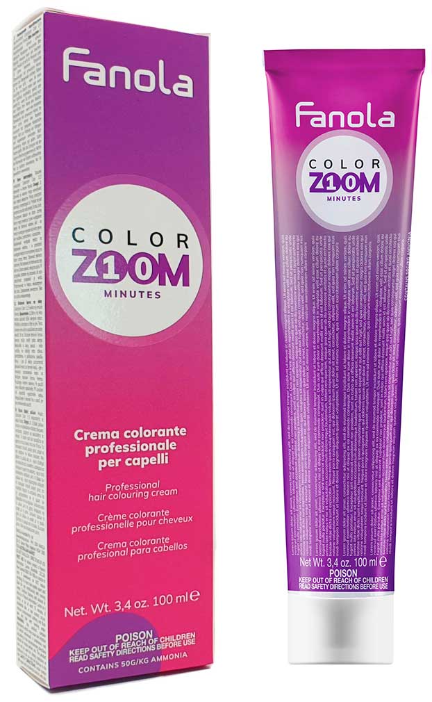 ColorZoom de Fanola es una nueva gama de cremas colorantes profesionales que actúan en tan solo 10 minutos, acorde con la filosofía dinámica e inteligente de la marca. ColorZoom permite a los peluqueros tomar más citas durante el día* y brindar incluso servicios parciales en muy poco tiempo como tratamientos de brillo y color.