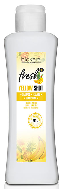 2. Limpieza Curly: champú Biokera Fresh Yellow Shot Shampoo, con una fórmula suave y respetuosa para una limpieza natural y una hidratación profunda del rizo.