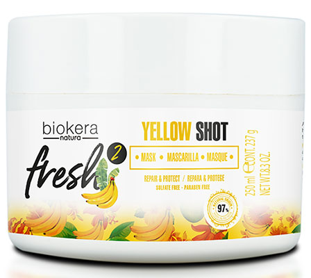 3. Hidratación profunda (cuando se requiera): mascarilla Biokera Fresh Yellow Shot, sin siliconas, sulfatos ni aceites minerales ni oclusivos en su composición.
