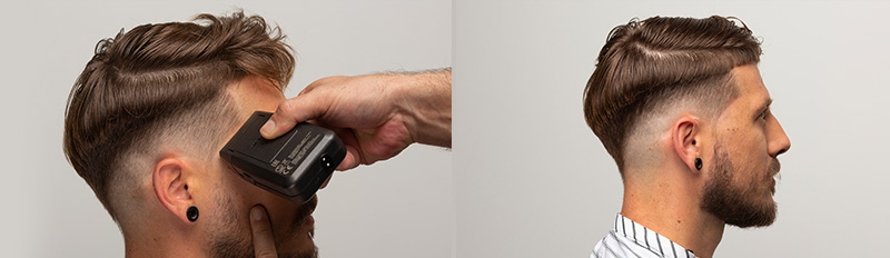 Lo más importante de un corte de pelo de calidad es el rasurado, como las partes de la piel limpias alrededor de las zonas del contorno y de la línea del cabello. Anthony Galifot utiliza la WAHL Finale para esta parte; está equipada con una lámina hipoalergénica y que facilita las transiciones de corte más rasuradas con los máximos niveles de precisión.