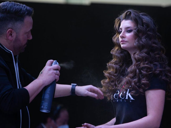 Estrella invitada de BC Barcelona, congreso estrictamente profesional de la belleza, Rafael Bueno, estilista de las estrellas: Eva Longoria, Nathy Peluso o Rocío Osorno, protagonista en una intervención magistral. Taller Ondas y Recogido con hilo