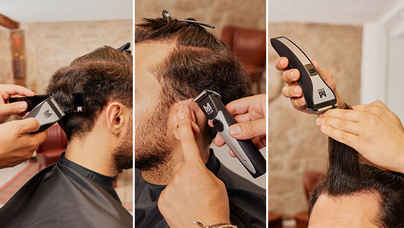 Para crear el corte de pelo, trabajó con las máquinas más innovadores de la gama de productos MOSER: la nueva MOSER KUNO con la Cuchilla Blending y Texturizing, así como los innovadores peines de fijación magnética.