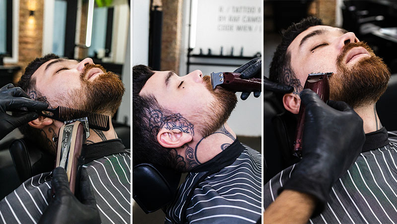 1.- Utiliza la WAHL LEGEND CORDLESS y la técnica de máquina sobre peine para acortar la barba de manera uniforme.