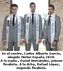 La gala de selección se celebró en Toledo. Carlos Alberto García, representante de Las Palmas de Gran Canaria, fue elegido Míster España 2010. El primer finalista fue el joven de Toledo, David Hernández, y el segundo finalista el representante de Córdoba, Rafael López.