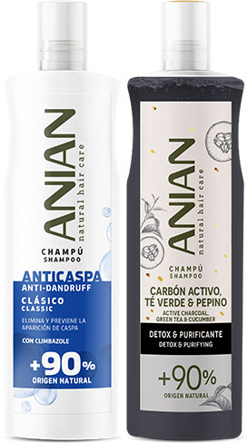 » Champú Equilibrante Cabello Graso Carbón activo y Té Verde Anian.