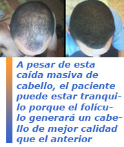 A pesar de esta caída masiva de cabello, el paciente puede estar tranquilo porque el folículo generará un cabello de mejor calidad que el anterior, ya que contará con los nutrientes necesarios para que su tamaño sea mayor, más sano y más fuerte que el cabello desprendido.