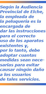 Finalmente, según la sección novena de la Audiencia, la empleada de la peluquería demandada era la persona que atendía a la clientela y la encargada de dar las instrucciones para el correcto uso de los aparatos existentes en la peluquería y, consecuentemente, de adoptar cuantas medidas sean necesarias para evitar causar ningún daño a los usuarios de tales servicios.