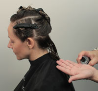 » Peina cada sección, asegurándote de que el producto queda bien distribuido. Aplica de 3 a 4 pulsaciones para toda la cabeza.