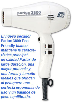 Parlux presenta su nueva versión en blanco del secador 3800 Eco-friendly, el último modelo que se une a los cinco colores ya existentes.