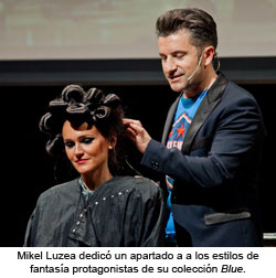 El peluquero también ha dedicado un apartado de sus espectáculos a los estilos de fantasía protagonistas de su colección Blue. Mikel Luzea se ha inspirado en la portada del álbum Tubular Bells de Mike Oldfield para recrear recogidos y semirrecogidos de efecto envolvente y formas tubulares.