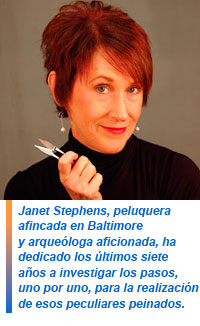 Janet Stephens, peluquera afincada en Baltimore y arqueóloga aficionada, ha dedicado los últimos siete años a investigar los pasos, uno por uno, para la realización de esos peculiares peinados.