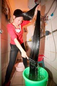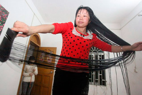 Una mujer china no se ha cortado el pelo desde hace 11 años y sus cabellos ahora miden más de dos metros de largo; es decir, es más larga su cabellera que su propio cuerpo.