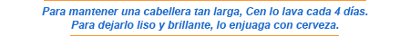 Asegura que para cuidar y mantener su cabello, lo lava cada cuatro días. Tarda más de una hora en lavarlo y un día y medio en secarlo. Por otro lado dijo no tener una sola cana y que para caminar tiene que trenzar su cabello.