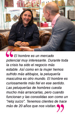 F.R.: Sí, los servicios están separados. El hombre es un mercado potencial muy interesante. Durante toda la crisis ha sido el negocio más estable. Así como con la mujer hemos sufrido más altibajos, la peluquería masculina es otro mundo. El hombre es curiosamente más fiel en ese sentido.