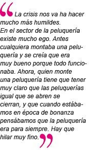 F.R.: Nos va ha hacer mucho más humildes. En el sector de la peluquería existe mucho ego. Antes cualquiera montaba una peluquería y se creía que era muy bueno porque todo funcionaba. Ahora, quien monte una peluquería tiene que tener muy claro que las peluquerías igual que se abren se cierran, y que cuando estábamos en época de bonanza pensábamos que la peluquería era para siempre. Hay que hilar muy fino. El pasar del IVA del 8 al 21% ya ha hecho una criba natural. Por ejemplo en Portugal ha caído un 30% la facturación. Eso va a ser inevitable. En España vamos a perder miles de salones.