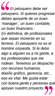 F.R.: Creo que sí, que también. Pero para ello hay otras personas que pueden ocuparse de ello. El peluquero, no obstante, debe ser peluquero. Si quieres progresar debes apoyarte de un buen manager, un buen contable, un buen financiero. En definitiva, de profesionales que sepan moverse en su terreno. El peluquero no es el hombre orquesta. Si le debo algo a alguien es a mi gente, a los profesionales que me rodean. Tenemos un despacho con recursos humanos, diseño gráfico, gerencia, etc... eso es vital. Me gusta estar con buena gente y personas que apoyan nuestro proyecto.