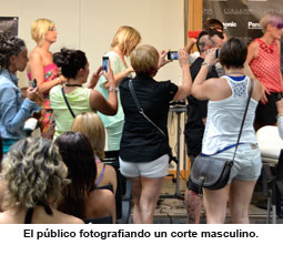 La demostradora Mabel Silva dejó clara la versatilidad del producto Panasonic y cómo las posibilidades ilimitadas de este producto pueden proporcionar cortos femeninos, masculinos y cortes escalados en medias melenas o melenas largas. También mostró todas las ventajas competitivas que ofrece el producto de Collexia Professional en todas sus gamas: secadores, moldeadores y planchas de pelo.