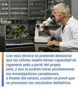 Los investigadores extrajeron células madre de pelos de la nuca de las personas que se han sometido al estudio. "De 50 pelos sacan millones de células y la mayor parte serán células madre", explican los expertos. Y luego las han implantado en sus calvas. Con esta técnica se pretende demostrar que las células madre tienen capacidad de regenerar pelo a partir del propio pelo, y eso lo podrán hacer posiblemente los investigadores canadienses, según Díaz-Ley, a finales del verano, cuando se prevé que se presenten los resultados definitivos.