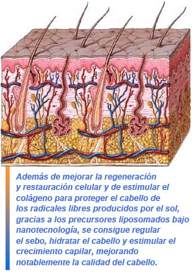 Mejora la regeneración y restauración celular y estimula los fibroblastos encargados de la sintetización del colágeno, protegiendo el cabello del ataque de los radicales libres. Actúa al mismo tiempo como potente antiinflamatorio.