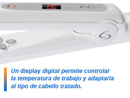 Un display digital permite controlar la temperatura de trabajo y adaptarla al tipo de cabello tratado. Utilizando la Función de Memoria es posible, además, personalizar la plancha programándola con la temperatura más adecuada o de uso más frecuente.