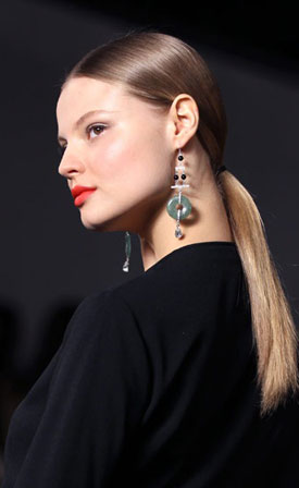 Por su parte, Victoria Beckham presentó su nueva colección combinando el estilismo de la coleta baja con accesorios para el cabello: un recogido bajo en acabado liso con una ancha cinta en la cabeza, muy útil para evitar despeinarse fácilmente. También puede combinarse con una diadema o un pañuelo, según el look final completo que se quiera conseguir.