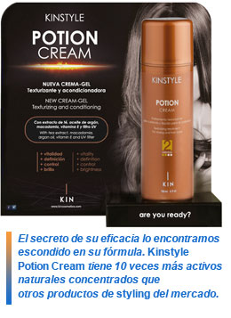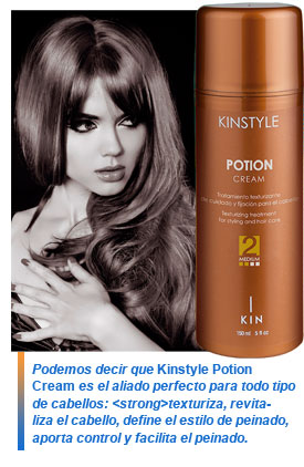 Podemos decir que Kinstyle Potion Cream es el aliado perfecto para todo tipo de cabellos: texturiza, revitaliza el cabello, define el estilo de peinado, aporta control y facilita el peinado. Es ideal para preparar los cabellos antes de definir cualquier estilo de peinado, para desenredar o para darle cocktail extra de nutrientes especialmente después del verano o tras realizar cualquier trabajo técnico.