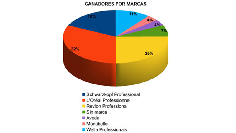 Otro dato a destacar es la marca comercial con la que trabajan los participantes en sus salones, que da información sobre qué marcas tienen más presencia entre los ganadores de los Premios Fígaro. Así pues, se observa que un 32% de los ganadores de los Premios Fígaro trabajan con marcas del grupo L'Oréal (L'Oréal Professionnel en su mayoría, pero también Kérastase o Redken), un 25% con Revlon Professional (u otras marcas de The Colomer Group, como American Crew o Tigi) y un 18% con Schwarzkopf Professional, seguidos por