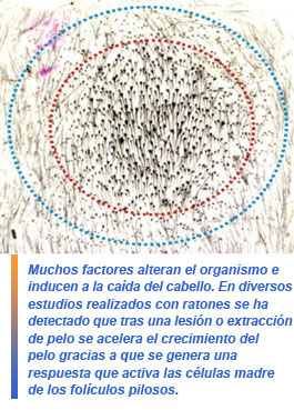 Las conclusiones del trabajo interdisciplinar coordinado por el doctor Chuong, de la University of Southern California (Estados Unidos), parecen ajenas al sentido común. Tras una lesión o extracción de pelo se genera una respuesta que activa las células madre de los folículos pilosos. Es decir, se acelera el crecimiento del pelo. Al menos, así se ha detectado en diversos estudios realizados con ratones. A raíz del trabajo, se hallaría una alternativa para hacer frente a la alopecia que hace mella a medida que se envejece.