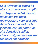 Este proceso no se origina en cualquier punto en el que se haya arrancado cabello. Por ejemplo, si la extracción pilosa se efectúa en una zona amplia con baja densidad capilar no se genera dicha regeneración. Por el contrario, si el área dañada es más reducida y cuenta con un patrón de alta densidad capilar, sí se consigue una regeneración capilar notable. En el caso de una extracción de 200 pelos se consiguen entre 450 y 1.300 cabellos, incluso fuera del área establecida.