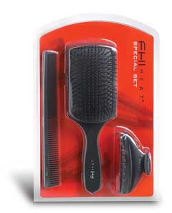 A partir de septiembre y hasta fin de existencias, con cada plancha FHI Platform que compres FHI Heat te regala este práctico set de peinado especial para plancha que incluye: peine especial resistente a altas temperaturas (nanotecnológico) para que puedas trabajar con la plancha cómodamente, cepillo raqueta para desenredar y dar el acabado perfecto y una pinza con la que seccionar el cabello mientras se va utilizando la plancha.