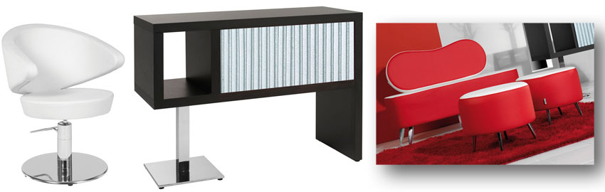 La zona de espera, compuesta por una base sólida rellena de espuma de alta densidad, es cómoda y confortable. Este mobiliario dispone de un respaldo muy sólido junto con patas de aluminio pulido. Como accesorio, se puede añadir un puf a juego con el modelo superior.