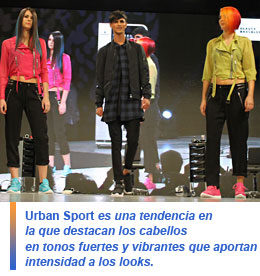 Acompañada del equipo creativo de la firma, Ana Guillén describió las tres corrientes que conforman la colección Essential Looks. Urban Sport, la primera, es una tendencia "deportiva, urbana y muy juvenil en sintonía con la filosofía de vida sana y al aire libre actual", en opinión de la responsable técnica de Essential Looks. En esta corriente destacan los cabellos con tonos fuertes y vibrantes, pertenecientes a la nueva gama de coloración que se lanzará en marzo. Se habla pues, de tonos verdes, azules, naranjas e incluso amarillos que aportarán intensidad a los looks. Sobre el escenario, se vieron bobs geométricos, muy despuntados. El movimiento del cabello resaltaba el degradado de los diferentes tonos combinados (rojo, violeta y amarillo). También se mostraron largos envolventes, más sutiles, con particiones verdes y azules. Para ellos, se trabajaron cortes undercut (largos en la parte superior y cortos alrededor de las orejas y en la parte inferior de la cabeza) muy cuadrados y compactos, dotándolos de movimiento a posteriori.