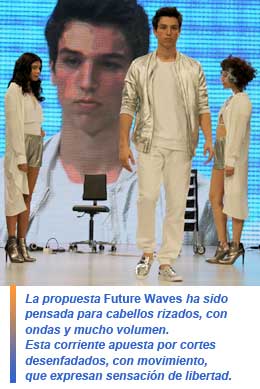 Future Waves es una tendencia cuyos protagonistas son los colores blancos y platas. En cuanto a peinado, se trataron cabellos rizados, ondulados y con volumen, en diferentes medidas: medios y largos. Se exhibieron cortes desenfadados, con movimiento, que expresaran sensación de libertad. En corte masculino, se exhibieron capas muy trabajadas, con cierta frescura en la zona superior de la cabeza.