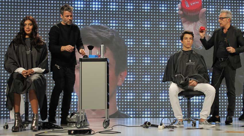 Posteriormente, Óscar Martín presentó a Richard Ashforth, embajador global de la línea Osis y fundador de la escuela Saco, referente en peluquería a nivel mundial. El estilista, director creativo de Sassoon durante más de 20 años, se mostró encantado con los peinados, cortes y tonos presentados en Essential Looks. Ashforth realizó varios cambios de imagen, en vivo, sirviéndose de varios productos de la firma.