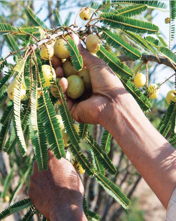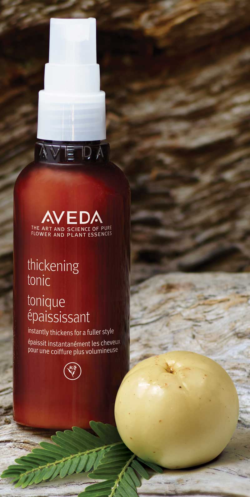 - El amla, con certificado orgánico, ayuda a espesar cada hebra de cabello. Se trata de una fruta ayurvédica utilizada por los habitantes de la India durante siglos para mejorar la salud del cabello. Aveda compra el amla proveniente de una pequeña granja en Sangli (India), que combina los métodos de cultivo tradicionales con las técnicas orgánicas modernas.