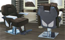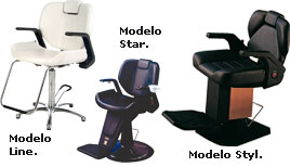Federico Martínez sugiere dos modelos dentro de la línea FM para adaptarse al espacio diseñado para los peluqueros: Eclipse y Eros. Ambos disponen de bomba hidráulica con freno de giro, respaldo reclinable y reposacabezas y tapicería ignífuga con el sistema permablock.