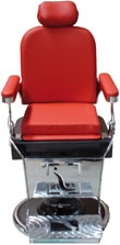 servicio práctico, presenta el modelo Club Zero con bomba hidráulica bloqueable en el pie de plato, reposacabezas y reposapiés con estructura cromada y respaldo reclinable manualmente.