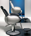 Este sillón cuenta con un sistema de elevación hidráulica, de modo que desplazar al cliente no representa un esfuerzo para el profesional. Además, dispone de reposacabezas y apoyapiés para mayor comodidad.