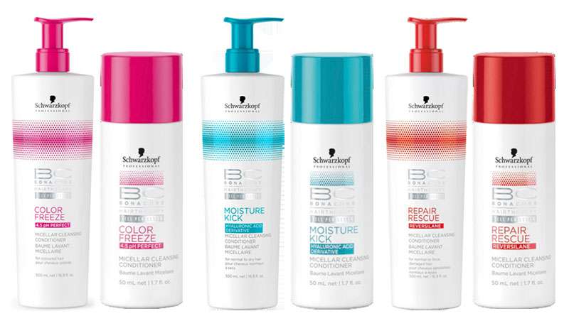Basándose en la fuerza de las tendencias low-poo (bajo en champú) y co-wash, Schwarzkopf Professional ha desarrollado los innovadores BC Acondicionadores Limpiadores Micelares para lavar y acondicionar suavemente todo tipo de cabello en un solo paso, sin necesidad de usar champú cada vez que se lava el cabello.