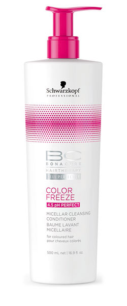 Formulado para cabello dañado, con la Tecnología Reversilane que nutre y repara el cabello a la vez que mejora la manejabilidad y el brillo. Tiene la habilidad de revertir hasta 3 años de daños en solo una aplicación, reestructura el cabello, mejora su fuerza y elasticidad y suaviza la superficie capilar. 500 ml / 50 ml. - BC Color Freeze Acondicionador Limpiador Micelar