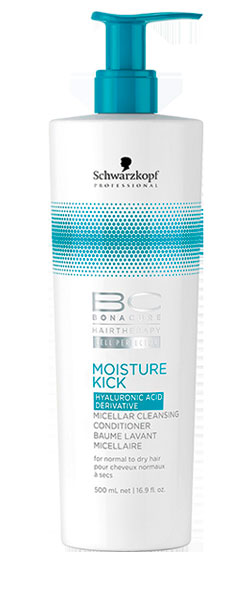 Formulado para cabello coloreado, con la Tecnología pH 4.5 Balancer ayuda a fortalecer la estructura capilar hasta conseguir su valor de pH óptimo a la vez que mejora la manejabilidad y el brillo. Mantiene los pigmentos del color en las capas más profundas de la matriz del cabello para una pérdida cero del color y un tono perfecto con una retención de hasta el 90% del color. También, actúa reavivando los colores apagados y proporciona un cuidado adicional y brillo. 500 ml / 50 ml. - BC Moisture Kick Acondicionador Limpiador Micelar