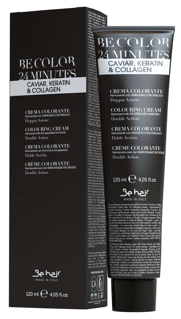 Be Color 24 Minutes, de Be Hair, ha sido desarrollada con una fórmula pionera que combina amoníaco encapsulado y monoetanolamina (MEA). Esta crema colorante ha sido enriquecida con caviar, queratina y colágeno con amoníaco encapsulado.