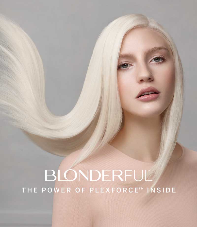 Revlon Professional presenta su última innovación en servicios de decoloración: Blonderful. Esta línea ha sido formulada con la tecnología Plexforce, que ayuda a mantener la estructura del cabello intacta. Esta tecnología contribuye también a reducir los posibles daños en cada uno de los pasos del proceso para que todas las mujeres del mundo se atrevan a ser rubias.