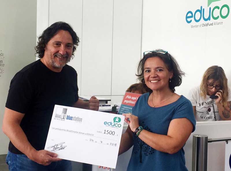 Mediante la venta de champús de PeluqueriaSolidaria.com, Félix Rojas, responsable de la conocida cadena Blue 01 Stylist by Félix Rojas, ha facilitado un donativo de 1.500 euros a la directora de comunicación y marketing de la fundación Educo, Floriane Hubert. Los fondos recaudados se destinarán a becas comedor para los niños más necesitados y vulnerables. El donativo ha sido posible gracias a la generosidad y solidaridad de la clientela y el equipo humano de los salones de belleza Blue 01 Stylist by Félix Rojas.