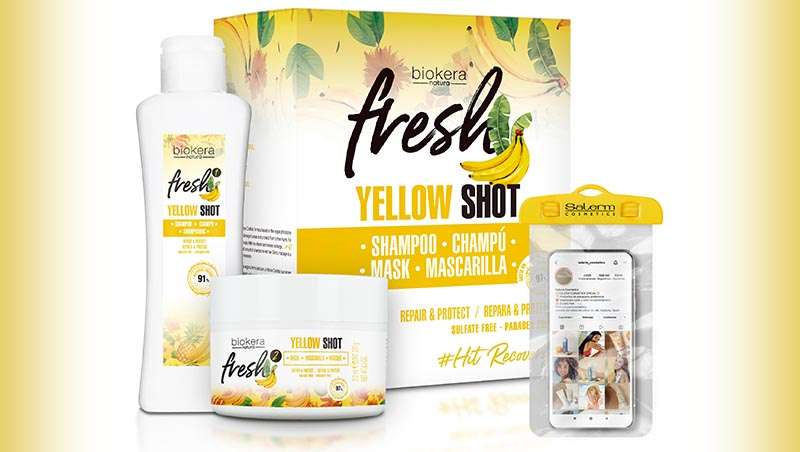 Para que las melenas estén en condiciones óptimas y totalmente sanas tras la época estival, Salerm Cosmetics presenta el pack Yellow Shot: “Reparación y Nutrición”. Un coctel de vitaminas para el cabello dentro de la línea vegana y natural de Salerm Cosmetics, que no solo reparará y nutrirá el cabello, sino que le aportará una recarga de vitaminas y minerales. Formulada con hasta un 97% de ingredientes naturales como el plátano de Canarias, ginseng y mango.