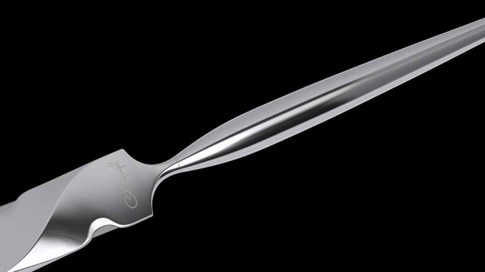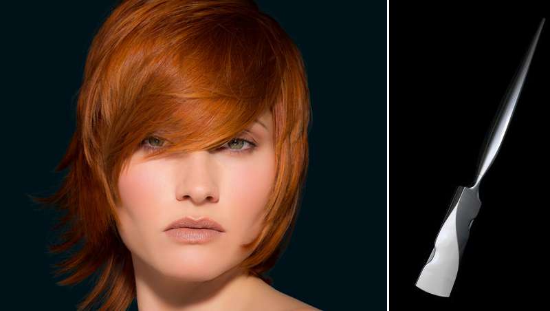 La herramienta parece una pieza de arte. El Calligraph Pen cuenta con un filo con ángulos en tres grados que cortan cada hebra de pelo en diagonal. La herramienta se coge como si de un pincel se tratara. A continuación se aplican golpes, con cierto pulso, hacia las puntas del cabello. Esto permite al peluquero cortar el cabello en un ángulo de 21 grados, lo que incrementa el área de trabajo un 270%.