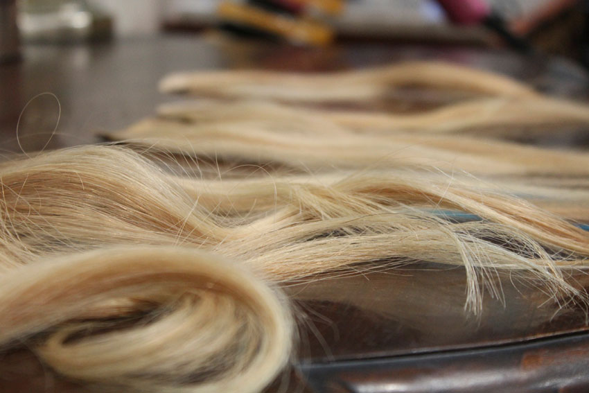 Se escogen las bandas planas que vamos a aplicar eligiendo el color y la extensión. Las tiras, que miden unos 4 cm de ancho, se adaptan a la melena haciéndolas imperceptibles tanto a la vista como al tacto. En Alma Luzón han coloreado algunas extensiones para darle un toque diferente a la melena.