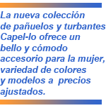La nueva colección de pañuelos y turbantes Capel-lo ofrece un bello y cómodo accesorio para la mujer, variedad de colores y modelos a precios ajustados.