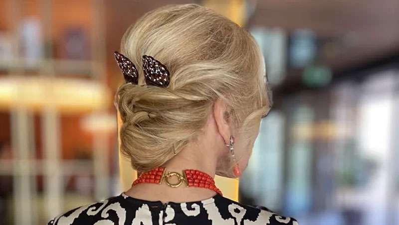 Así se consigue el recogido bajo de Carmen Lomana para deslumbrar en la temporada de celebraciones y que la socialité ha elegido para asistir a la boda de Teresa Baca, peinada por la peluquera sevillana Encarna Moreno