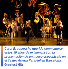 Carol Bruguera ha querido conmemorar estos 50 años de existencia con la presentación de un nuevo espectáculo en el Teatro Arteria Paral·lel en Barcelona: Greatest Hits. Esta obra es un homenaje a estos 50 años, y en ella se rememoran los principales estilos y tendencias que han definido la evolución de la peluquería desde que nació Carol Bruguera. El espectáculo repasa de esta manera algunos de los momentos mas representativos de la música, la moda y la peluquería.